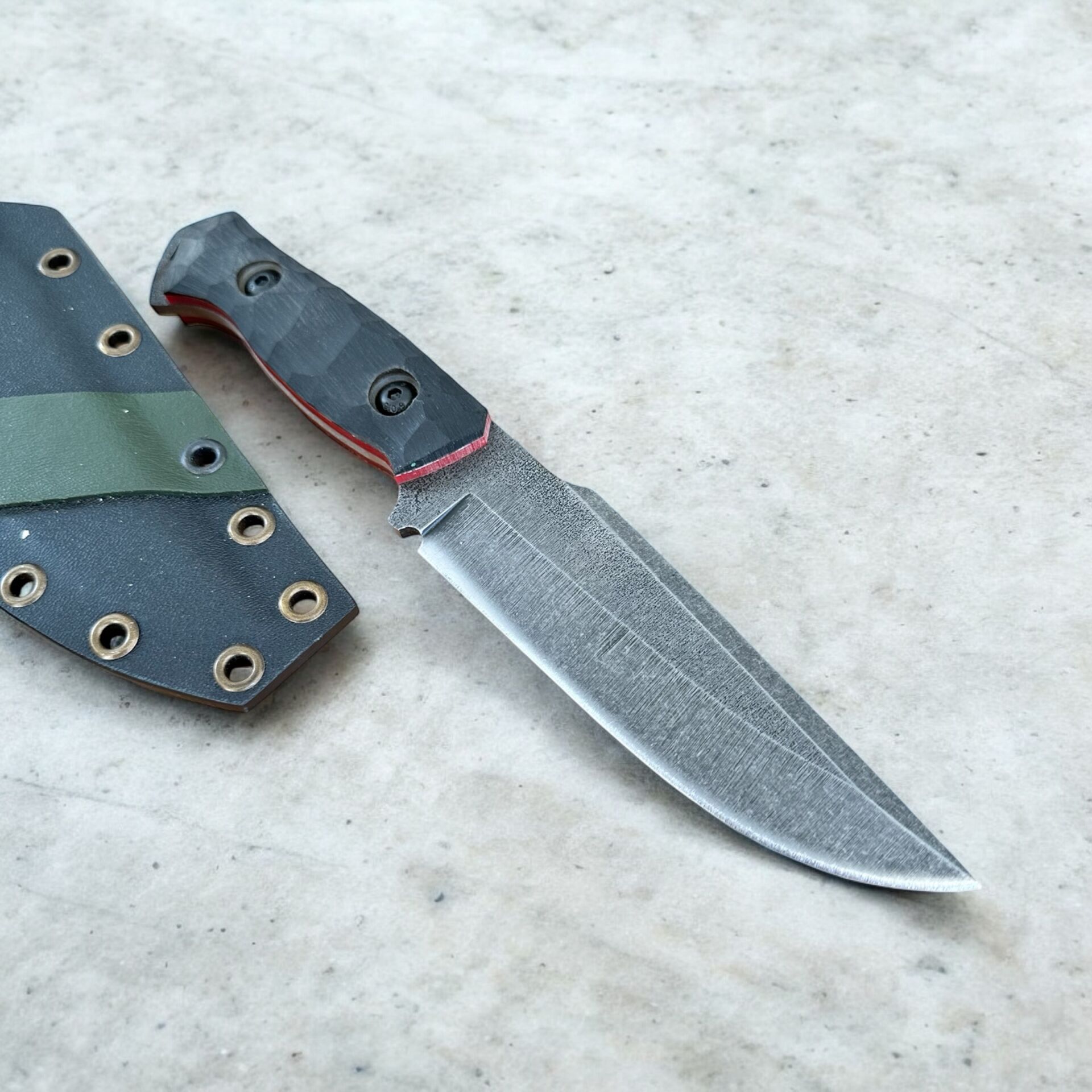 Stonewash ve asit yıkama kaplama işlemleri sayesinde pas direnci artırılmış, ağır kullanım şartlarında bile çizilmelere ve izlere karşı uzun ömürlü hale getirilmiştir. Kompakt kabza yapısı, kırmızı liner detayı ile estetik bir görünüm kazandırır. Profesyonel metal tokalı Kydex kılıf, güvenli taşıma ve kullanım kolaylığı sağlar.