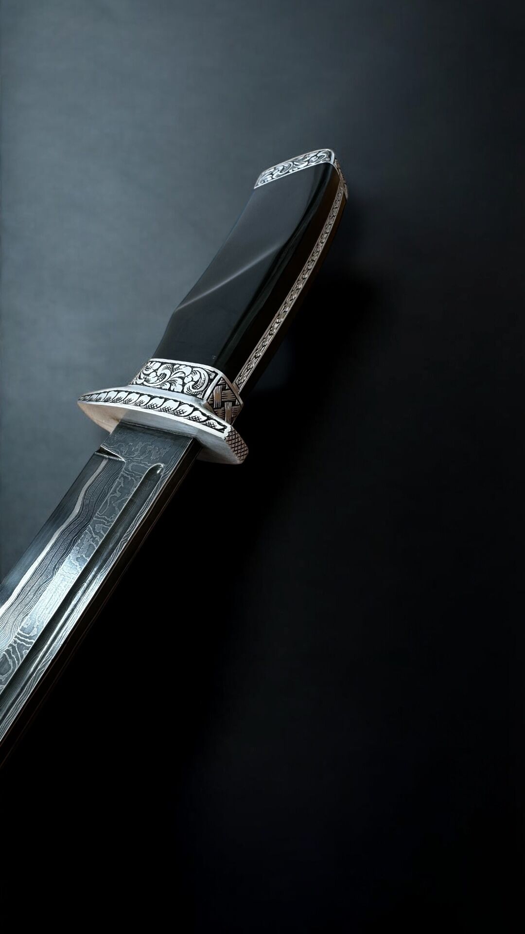 36 cm toplam uzunluğu ve 6 mm kalınlığıyla hem koleksiyonluk hem de ağır hizmet için ideal olan bu bıçak, yüksek kalite nikelli San Mai Damascus çeliğinin muazzam keskinliği ve dayanıklılığıyla öne çıkar. El işi gravür detayları, sanat ve zanaatın buluştuğu bu ürünü eşsiz kılar.
