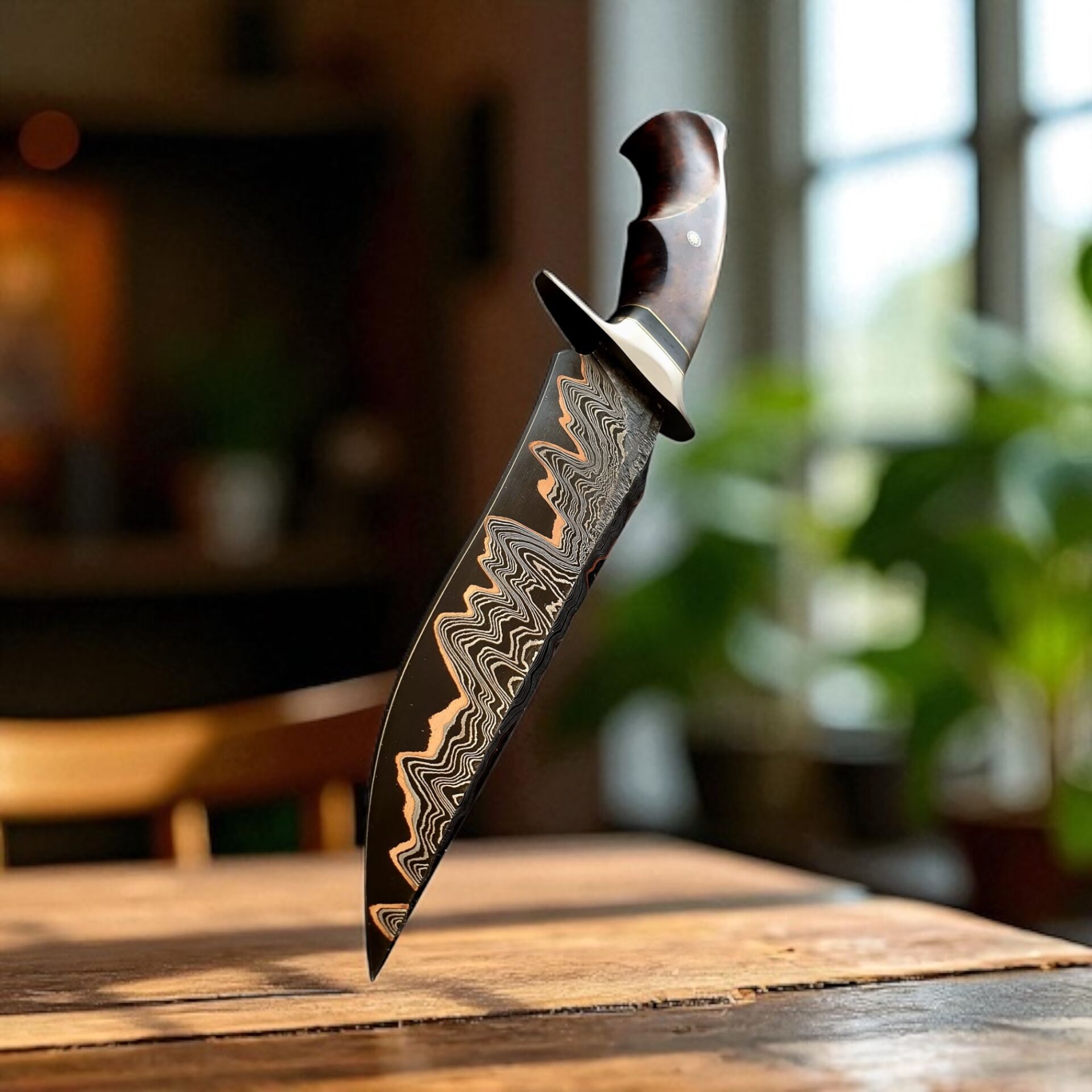 Benzersiz tasarımı, yüksek kalite malzemeleri ve koleksiyon değerindeki estetiğiyle öne çıkan bu el yapımı San Mai Damascus Bowie bıçak, sınırlı sayıda üretilmiştir. Her detayı ustalıkla işlenmiş ve sanatsal düzeyde tamamlanmıştır.
