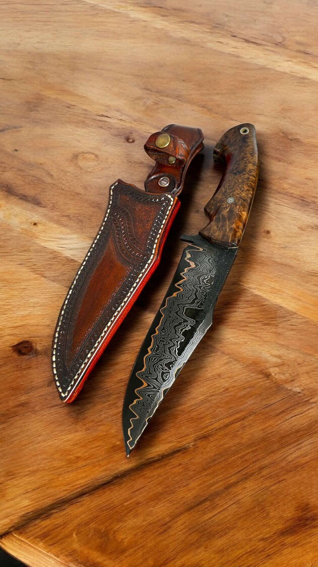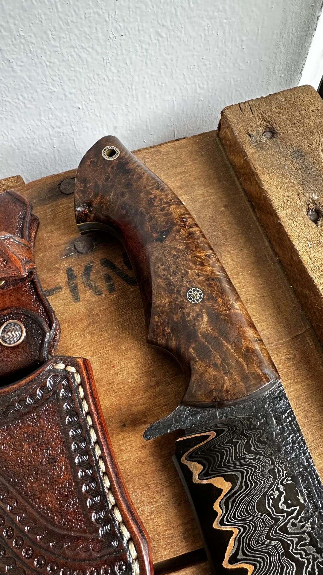 Bu özel bıçak, ülkemizde ender olarak uygulanan bir teknikle, Damascus Şam Çeliği ve bakır katmanların San Mai yapıda birleştirilmesiyle dövülerek üretilmiştir. Çelik yapısında kullanılan 15N20 + O2 + Bakır bileşimi, hem görsel derinlik hem de yüksek mekanik performans sağlar.