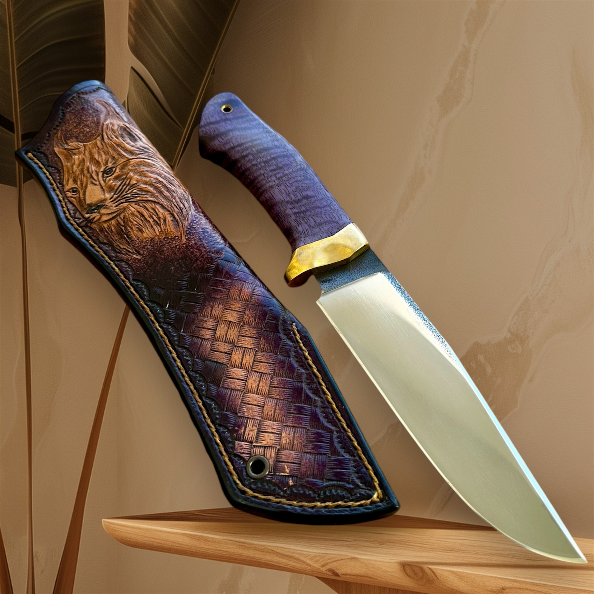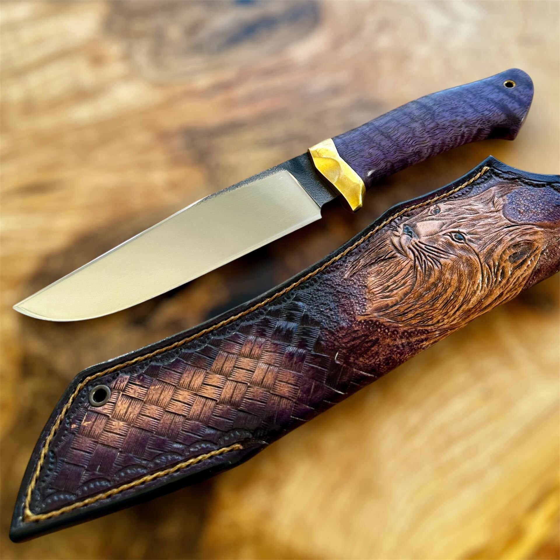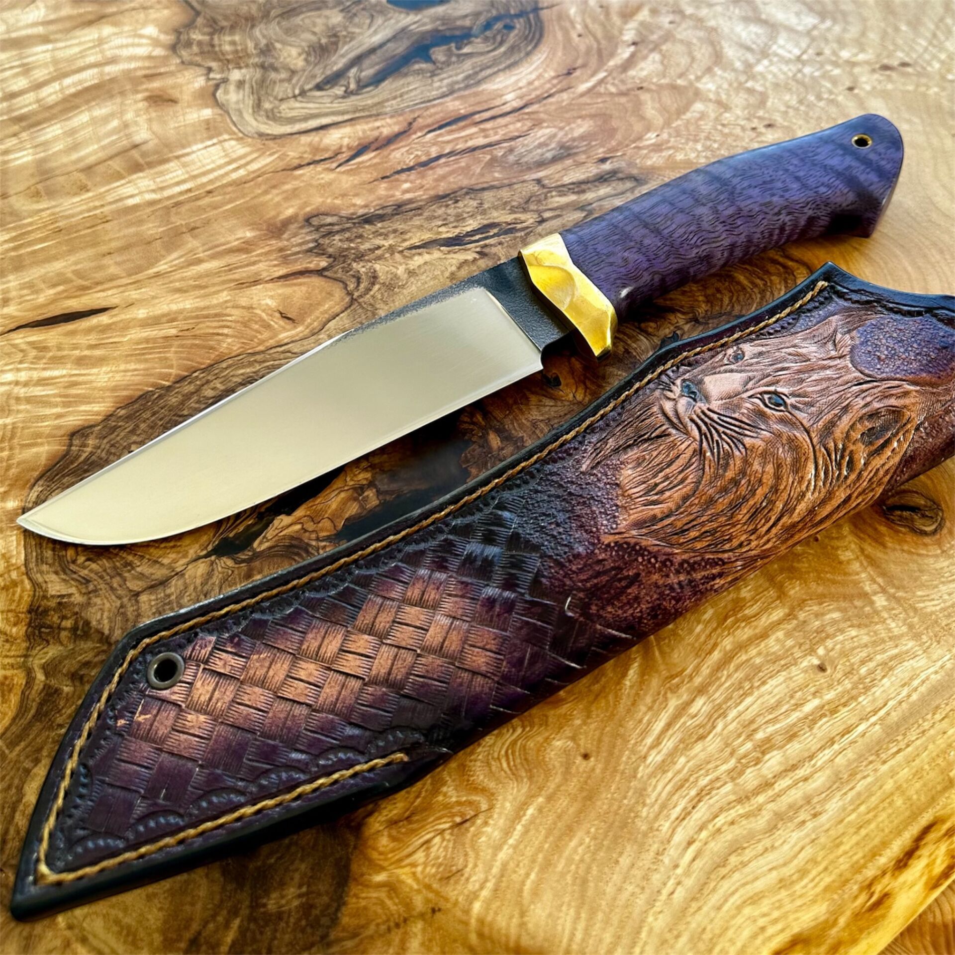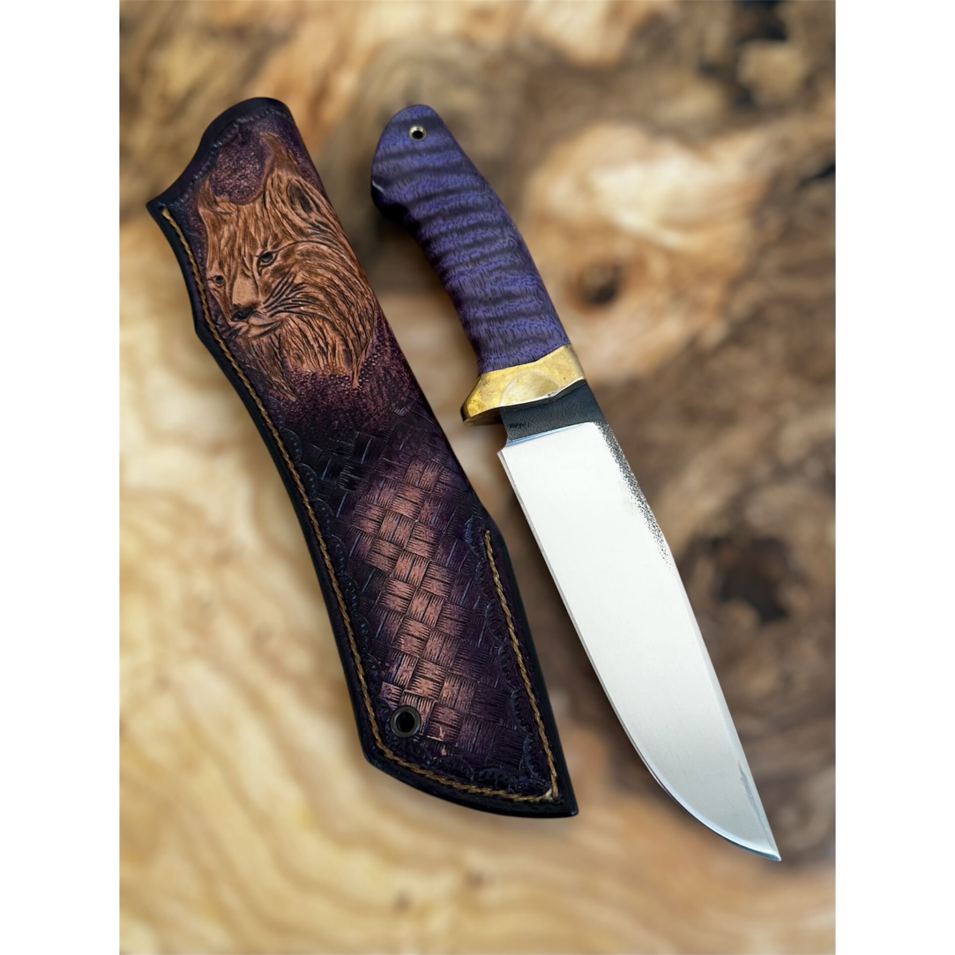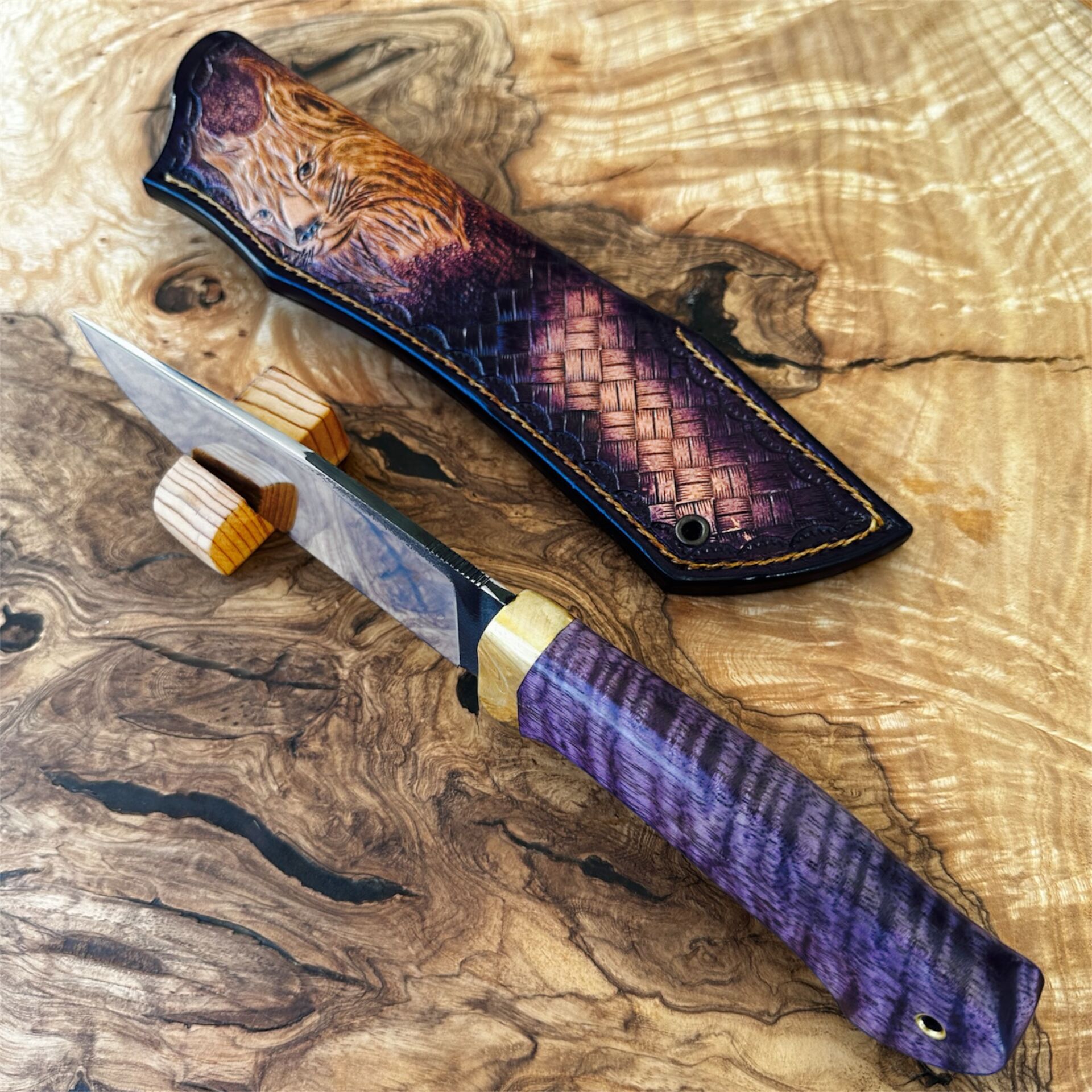 Doğal dokusuyla öne çıkan stabilize curly mango kabze, her bıçağa farklı bir kimlik kazandırır.
