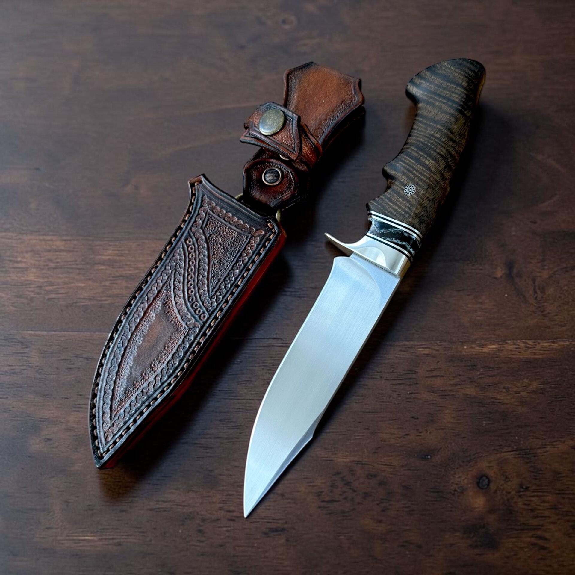 Yüksek korozyon direnci ve keskinlik stabilitesi sunan RWL-34, paslanmaz damascus formunda hem performans hem estetik açıdan fark yaratır. Her paslanmaz damascus desen, RWL-34 tabanlı yapı sayesinde benzersiz bir karakter sunar.