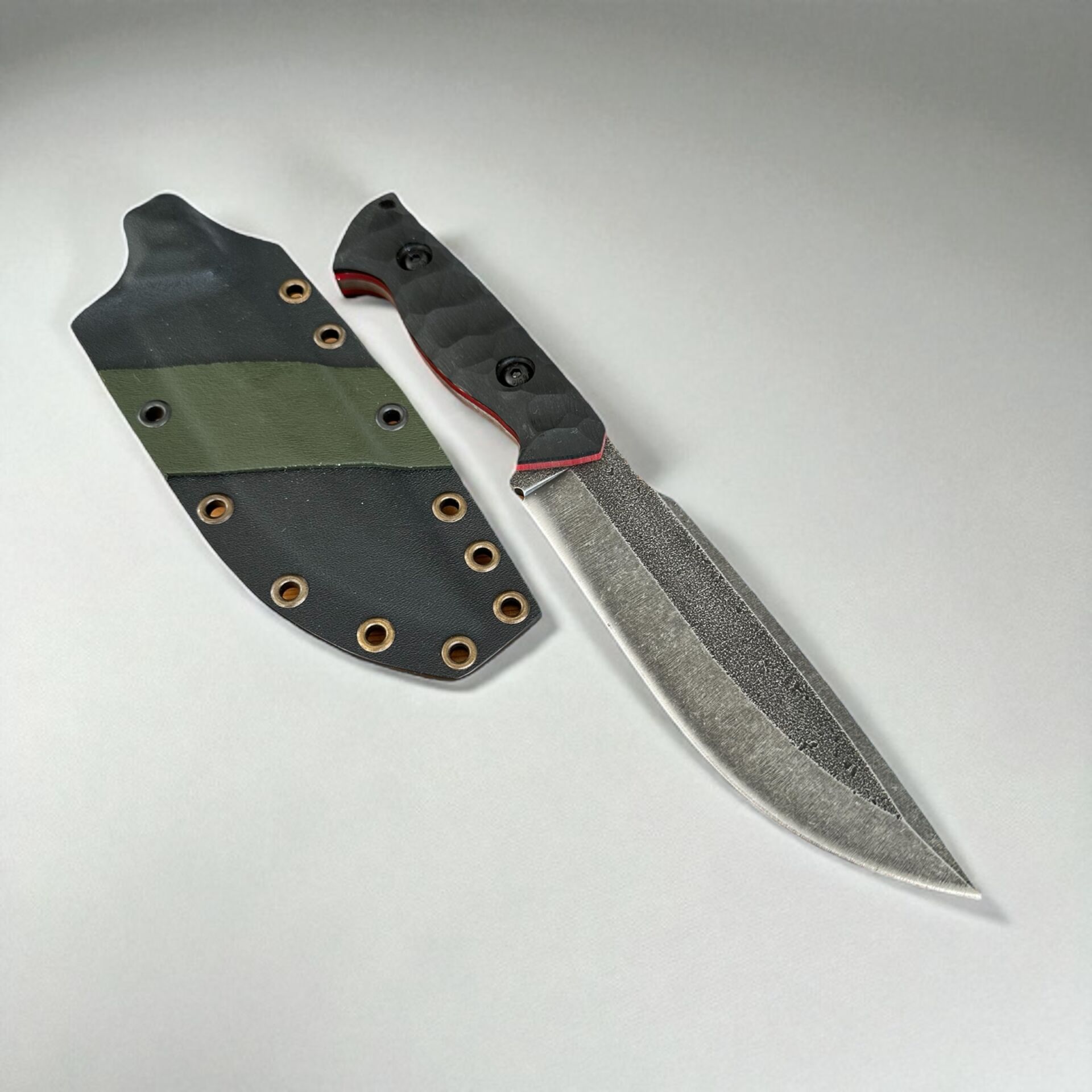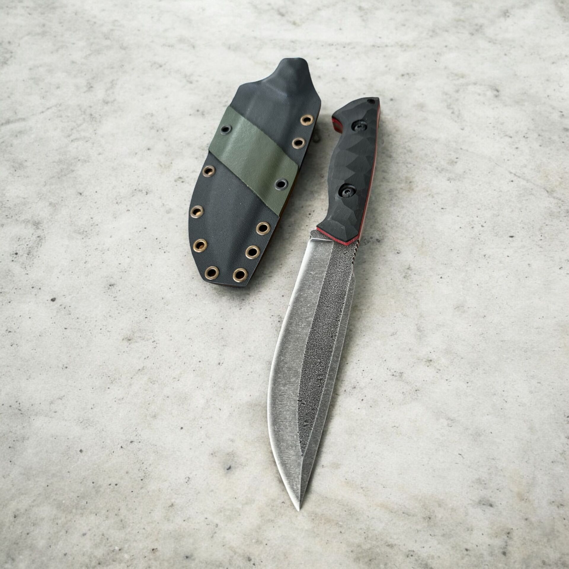 Stonewash ve asit yıkama kaplama işlemleri sayesinde pas direnci artırılmış, ağır kullanım şartlarında bile çizilmelere ve izlere karşı uzun ömürlü hale getirilmiştir. Kompakt kabza yapısı, kırmızı liner detayı ile estetik bir görünüm kazandırır. Profesyonel metal tokalı Kydex kılıf, güvenli taşıma ve kullanım kolaylığı sağlar.