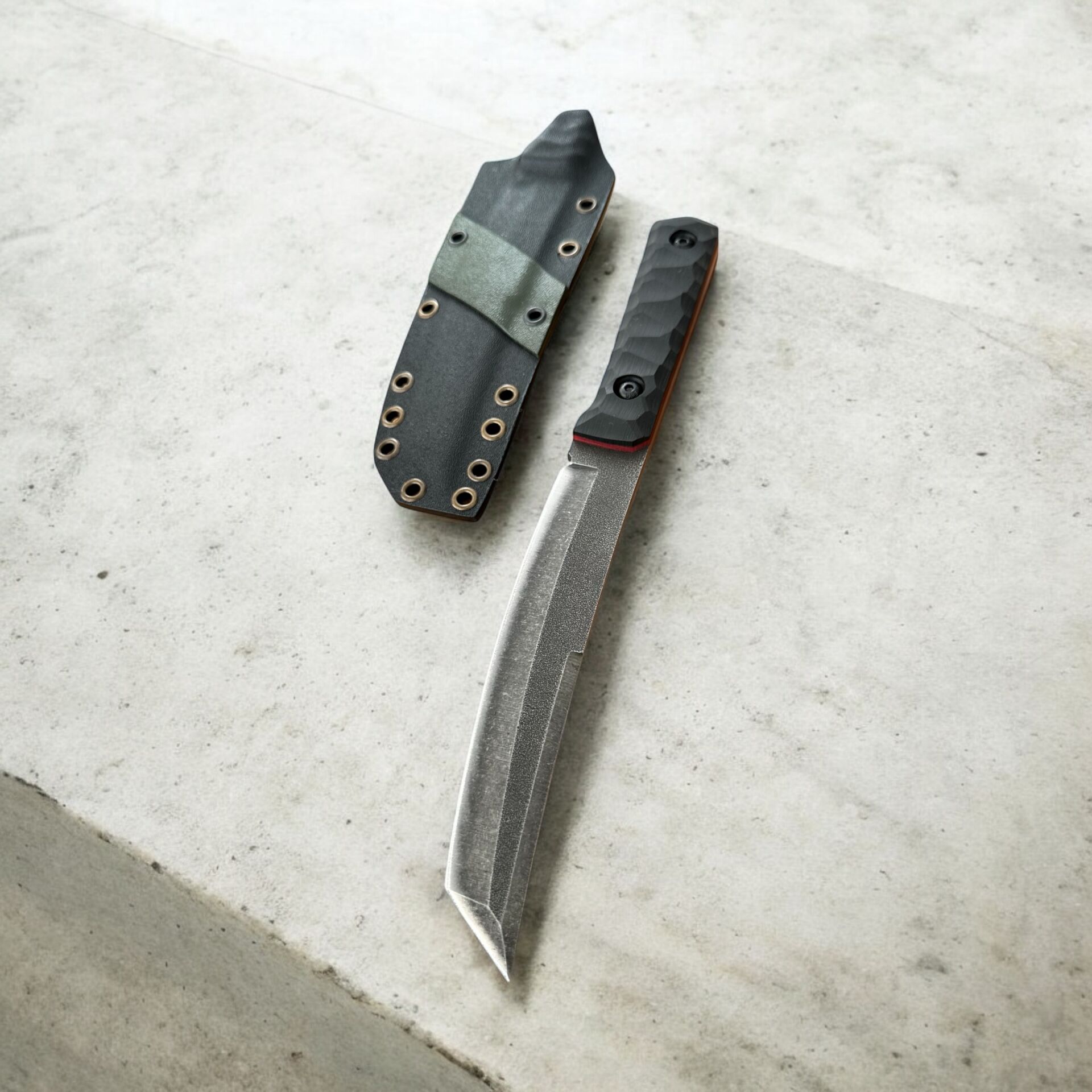 Stonewash ve asit yıkama kaplama işlemleri sayesinde pas direnci artırılmış, ağır kullanım şartlarında bile çizilmelere ve izlere karşı uzun ömürlü hale getirilmiştir. Kompakt kabza yapısı, kırmızı liner detayı ile estetik bir görünüm kazandırır. Profesyonel metal tokalı Kydex kılıf, güvenli taşıma ve kullanım kolaylığı sağlar.